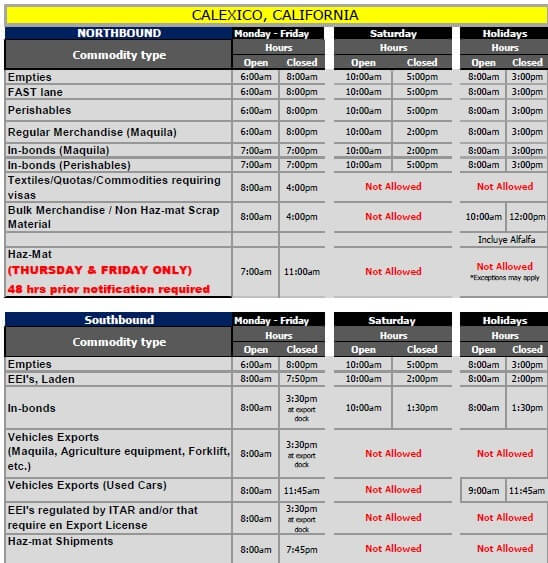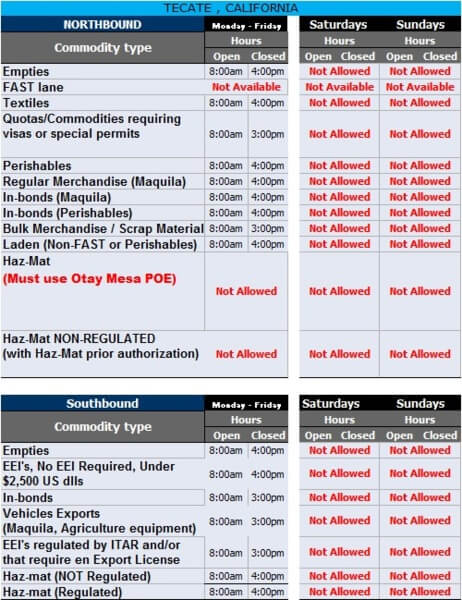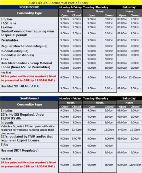 Border Wait Times Ports of EntryCommercial Vehicles: El Paso, TX McAllen, TX Nogales, AZ Laredo, TX San Luis, AZ Tecate, CA Calexico, CA Otay, CA Santa Teresa, NM Commercial Port Schedules San Luiz, AZ Nogales, AZ Tecate, CA Calexico, CA